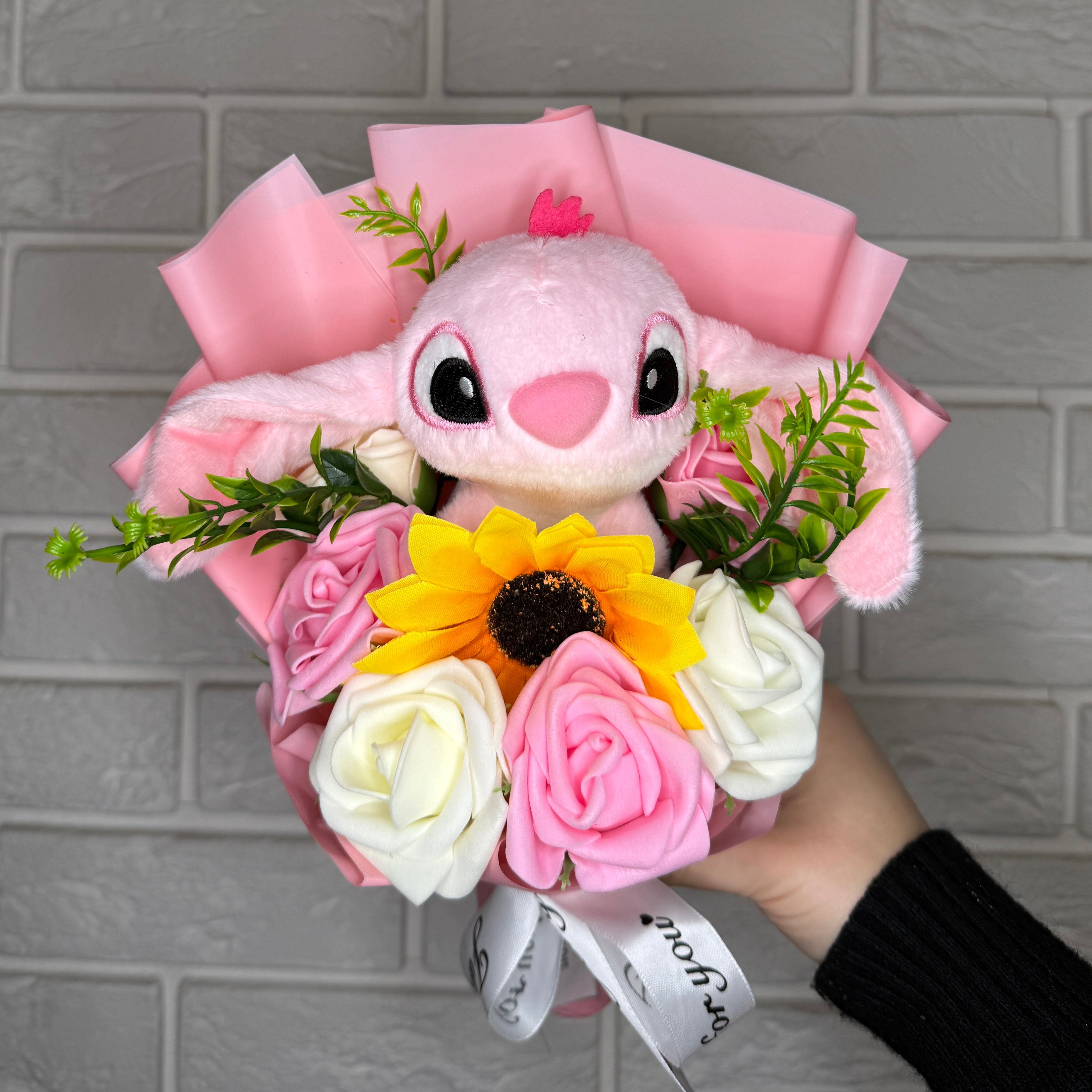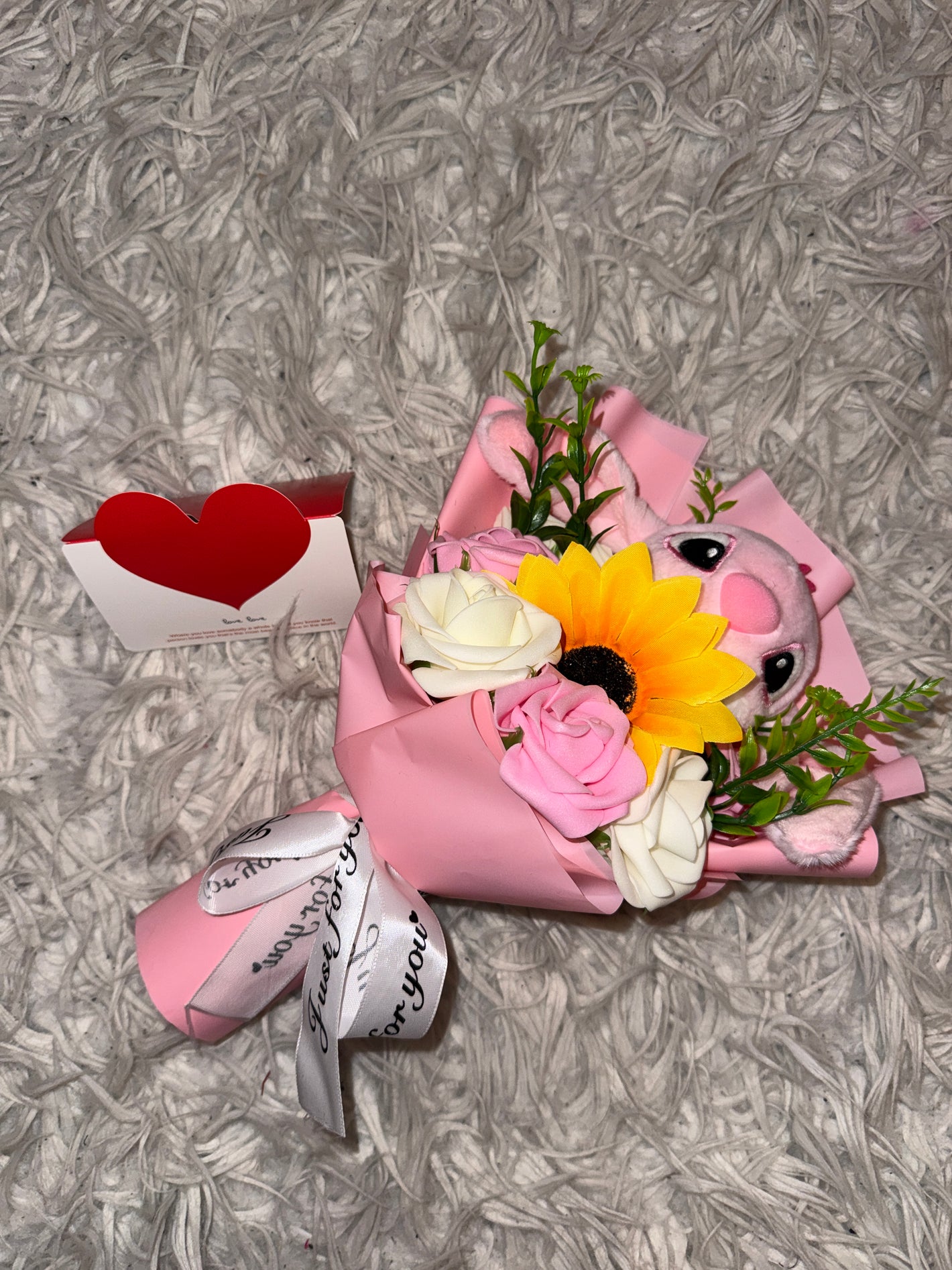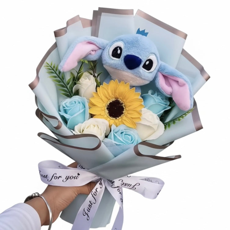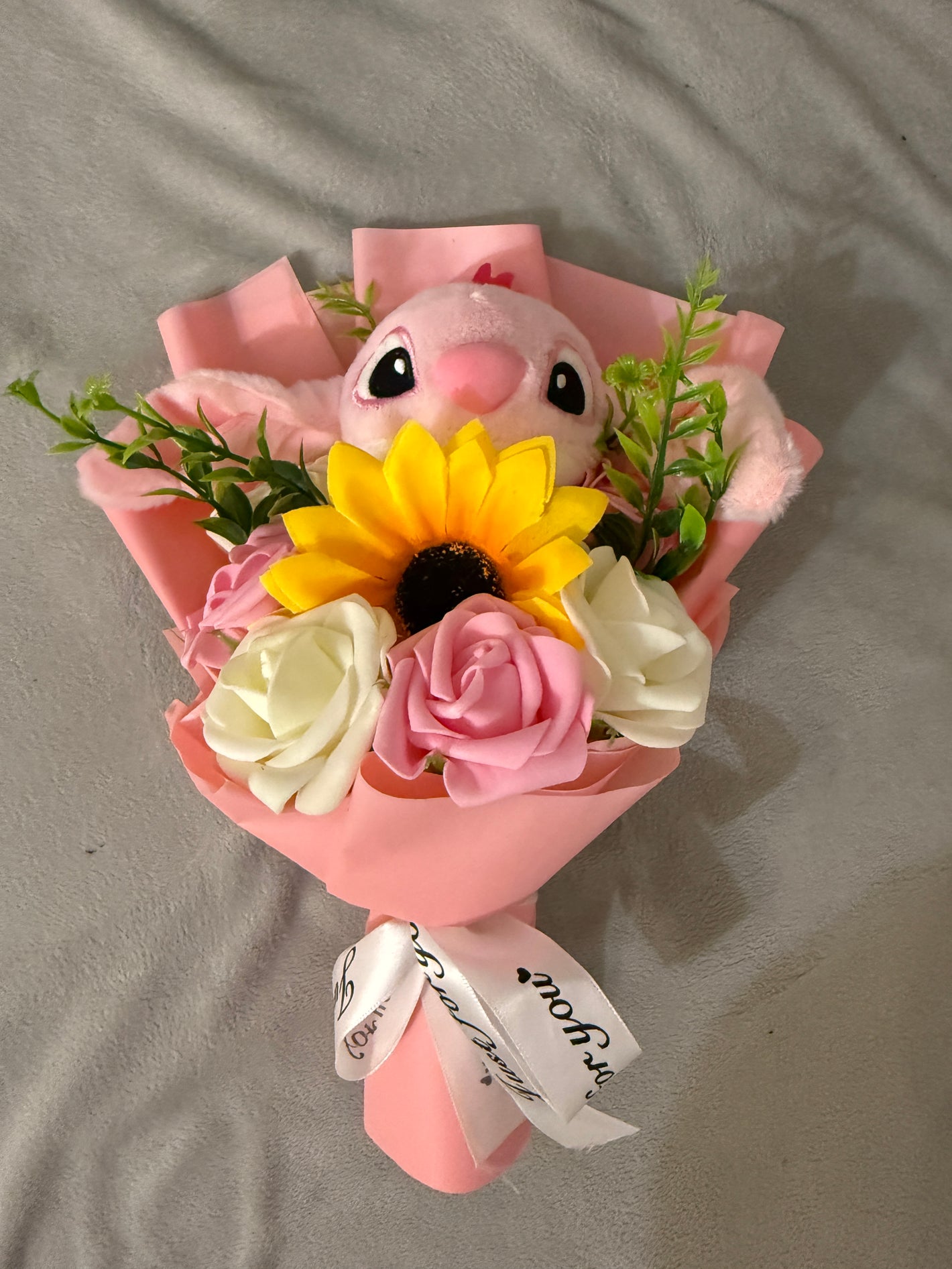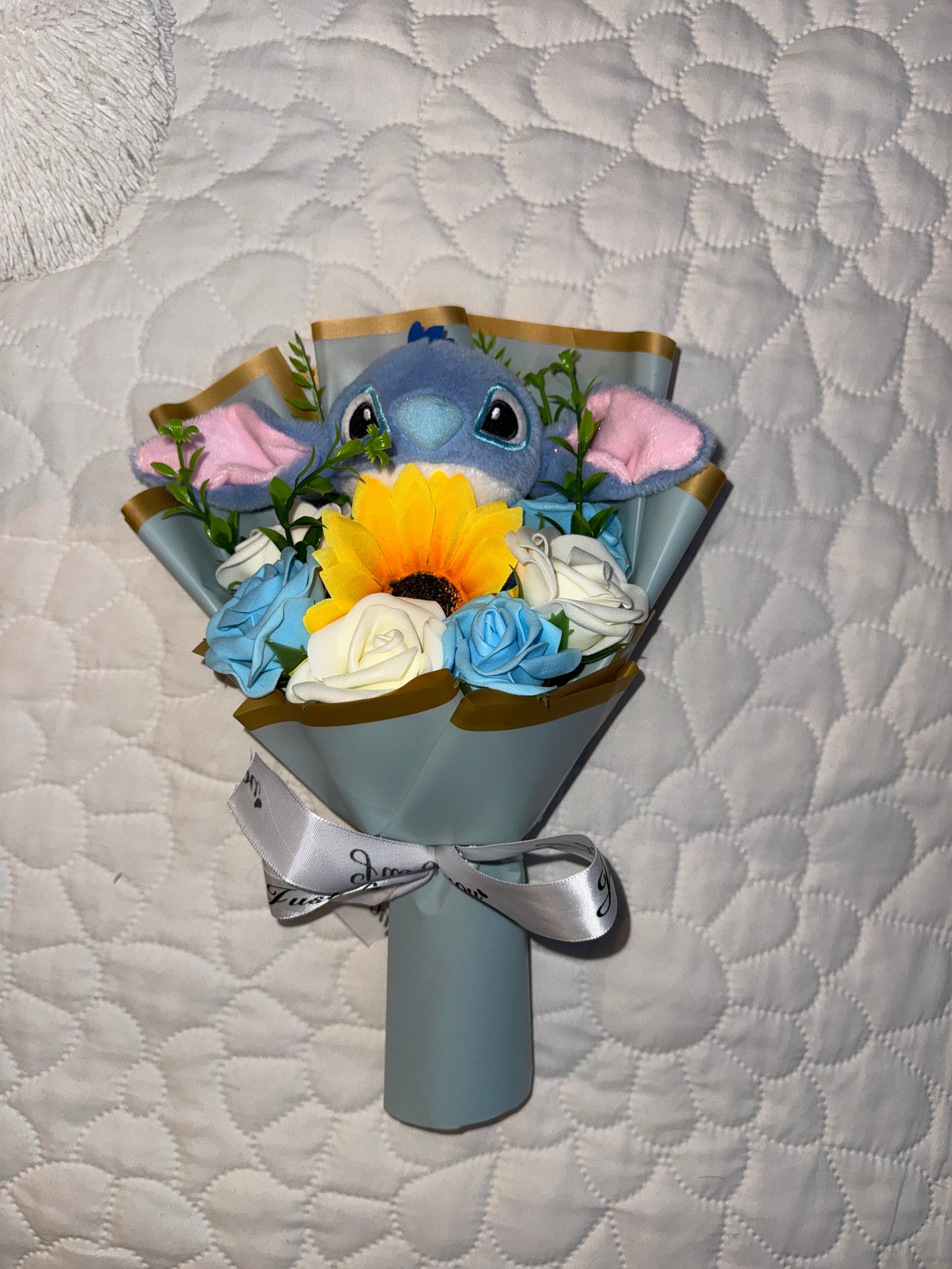 Wyjątkowy bukiet ze słonecznikiem, różami i uroczym pluszakiem. Bukiet dostępny w 3 wariantach 🩵🩷💜 kolorystycznych, idealnych do wyboru na każdą okazję.