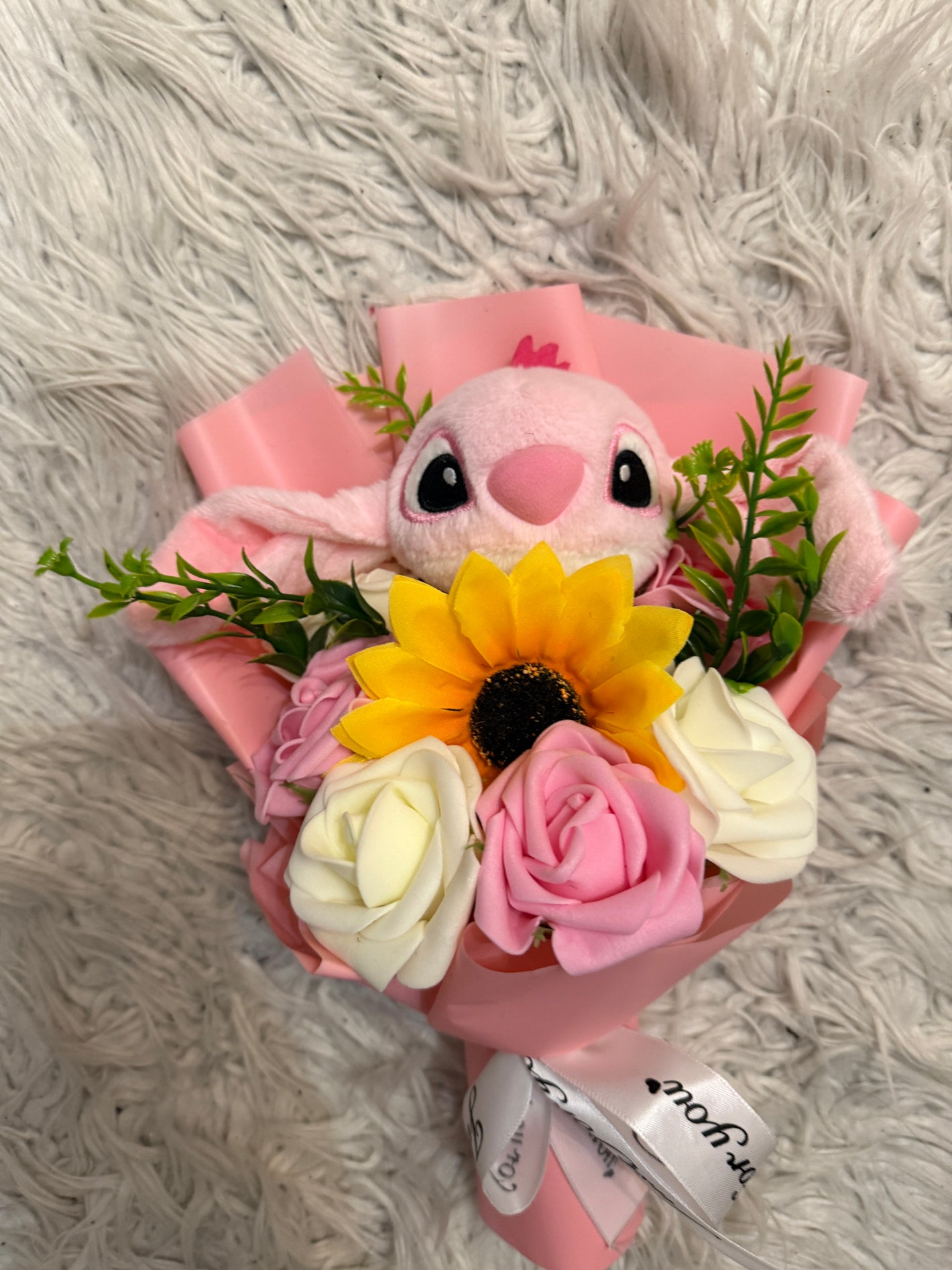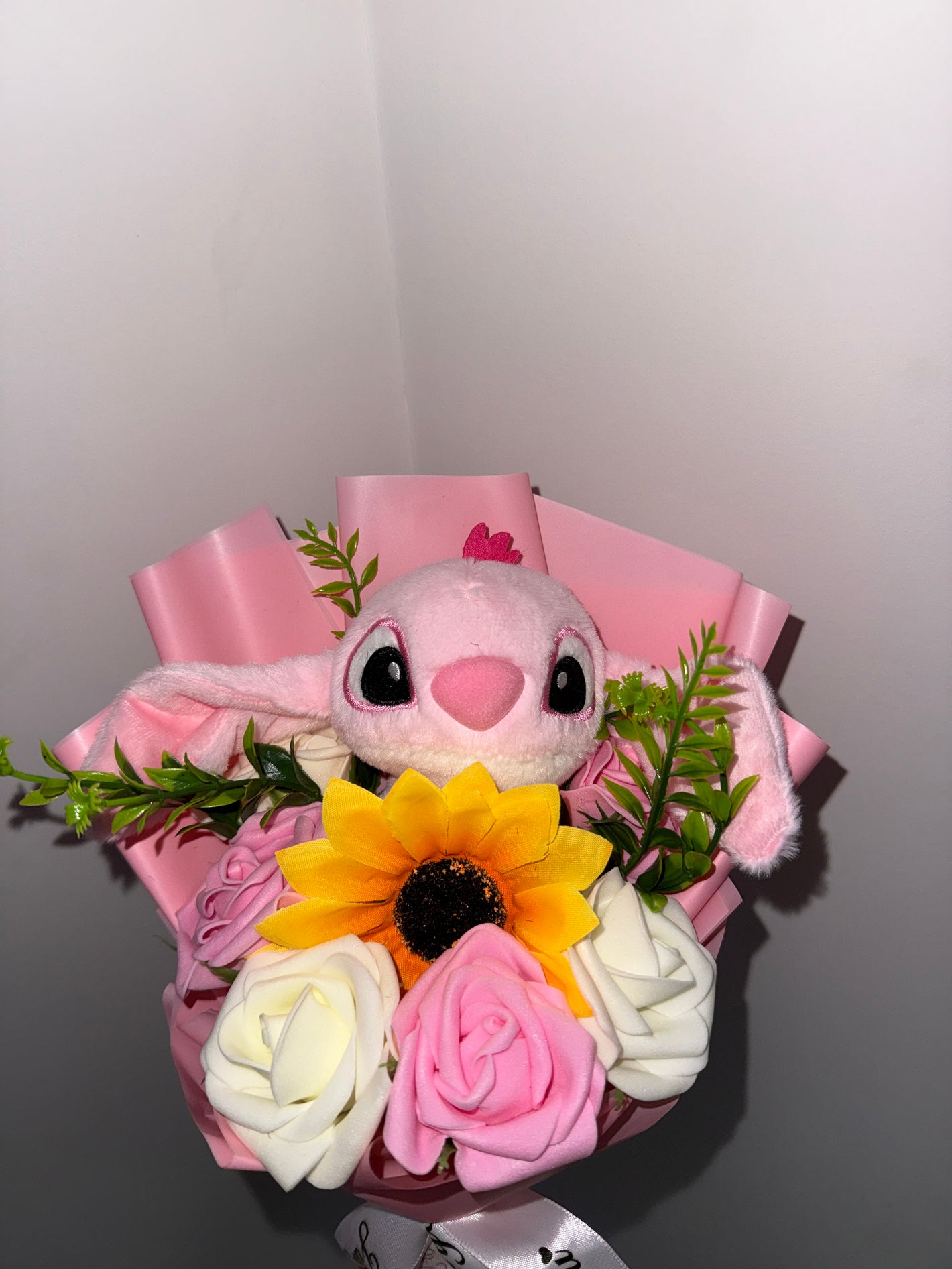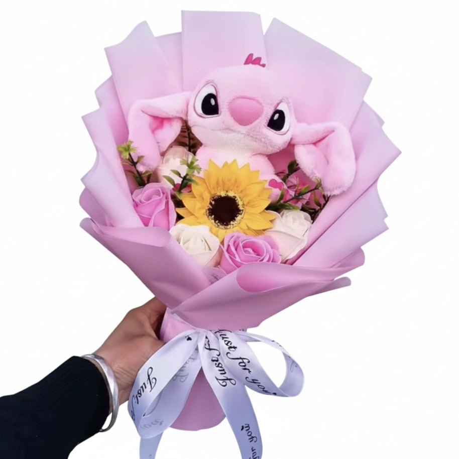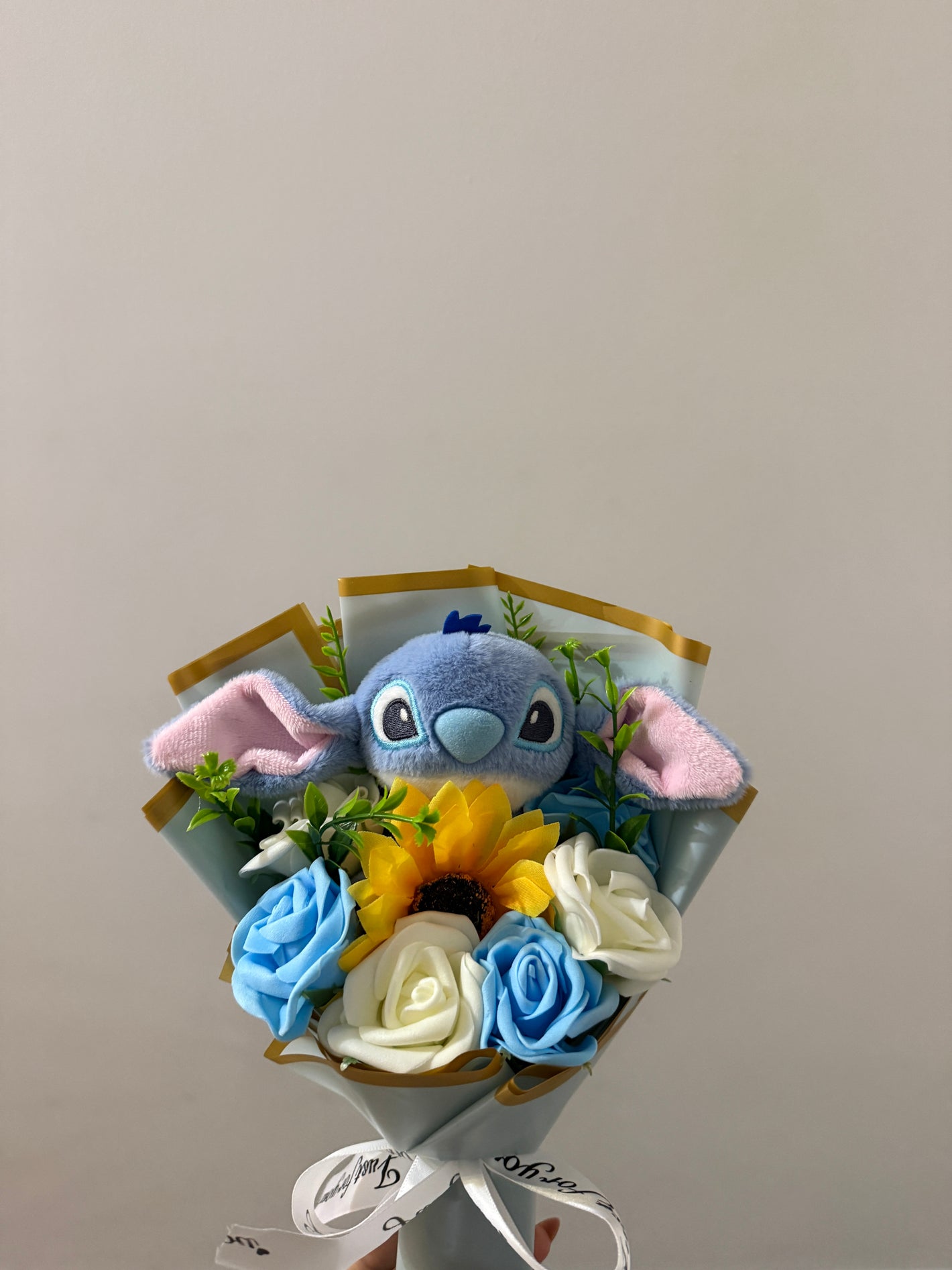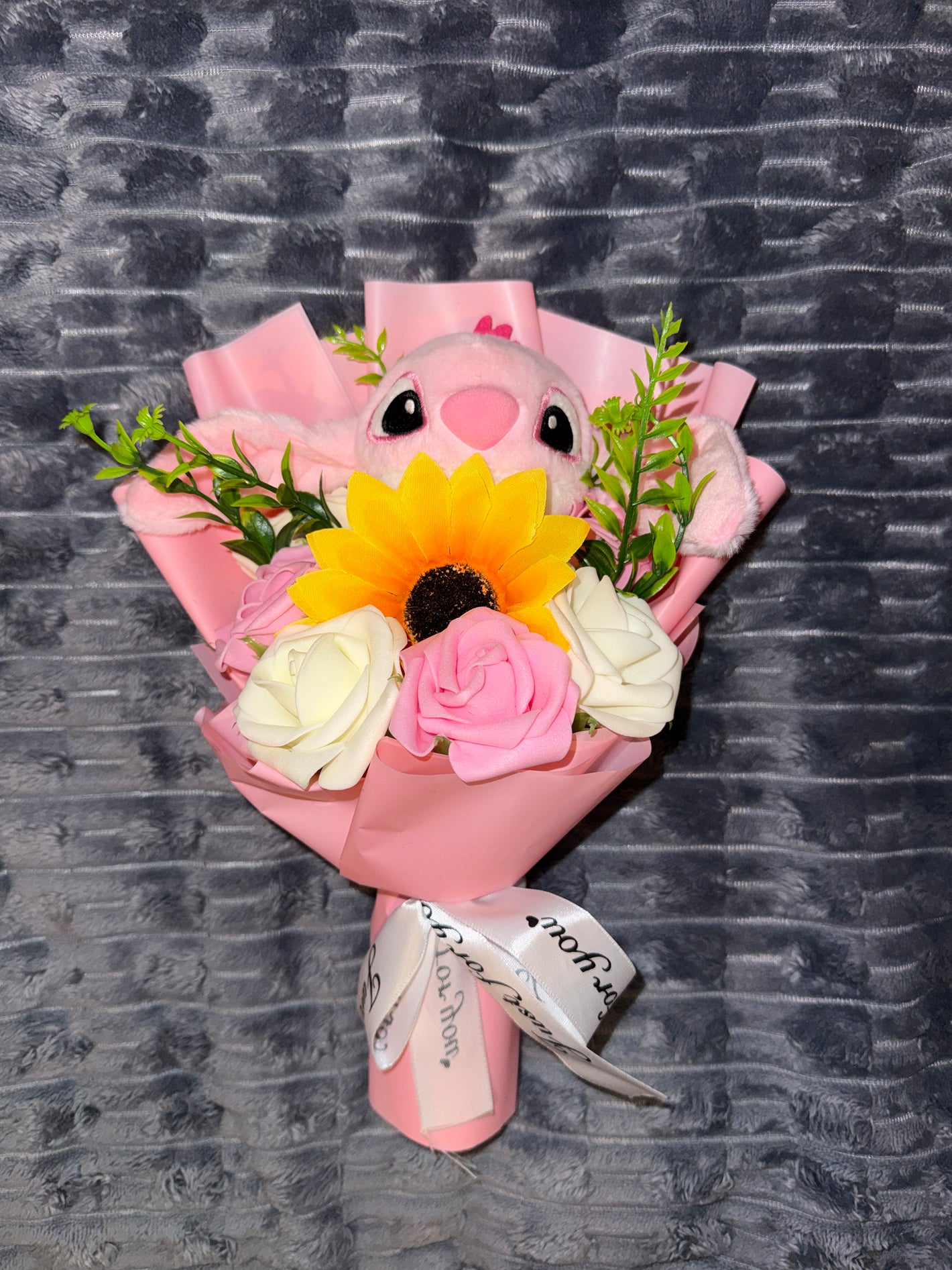 Wyjątkowy bukiet ze słonecznikiem, różami i uroczym pluszakiem. Bukiet dostępny w 3 wariantach 🩵🩷💜 kolorystycznych, idealnych do wyboru na każdą okazję.